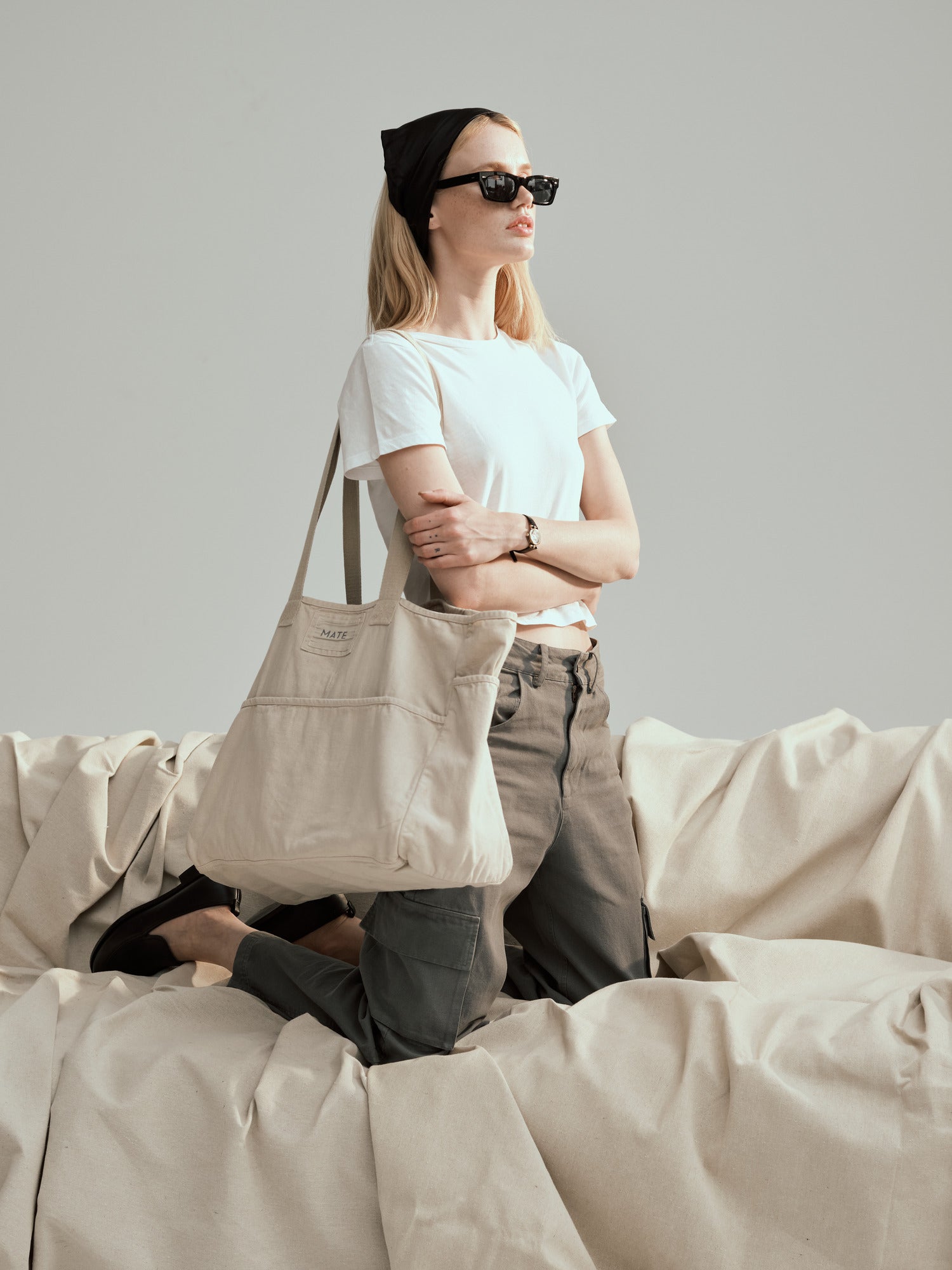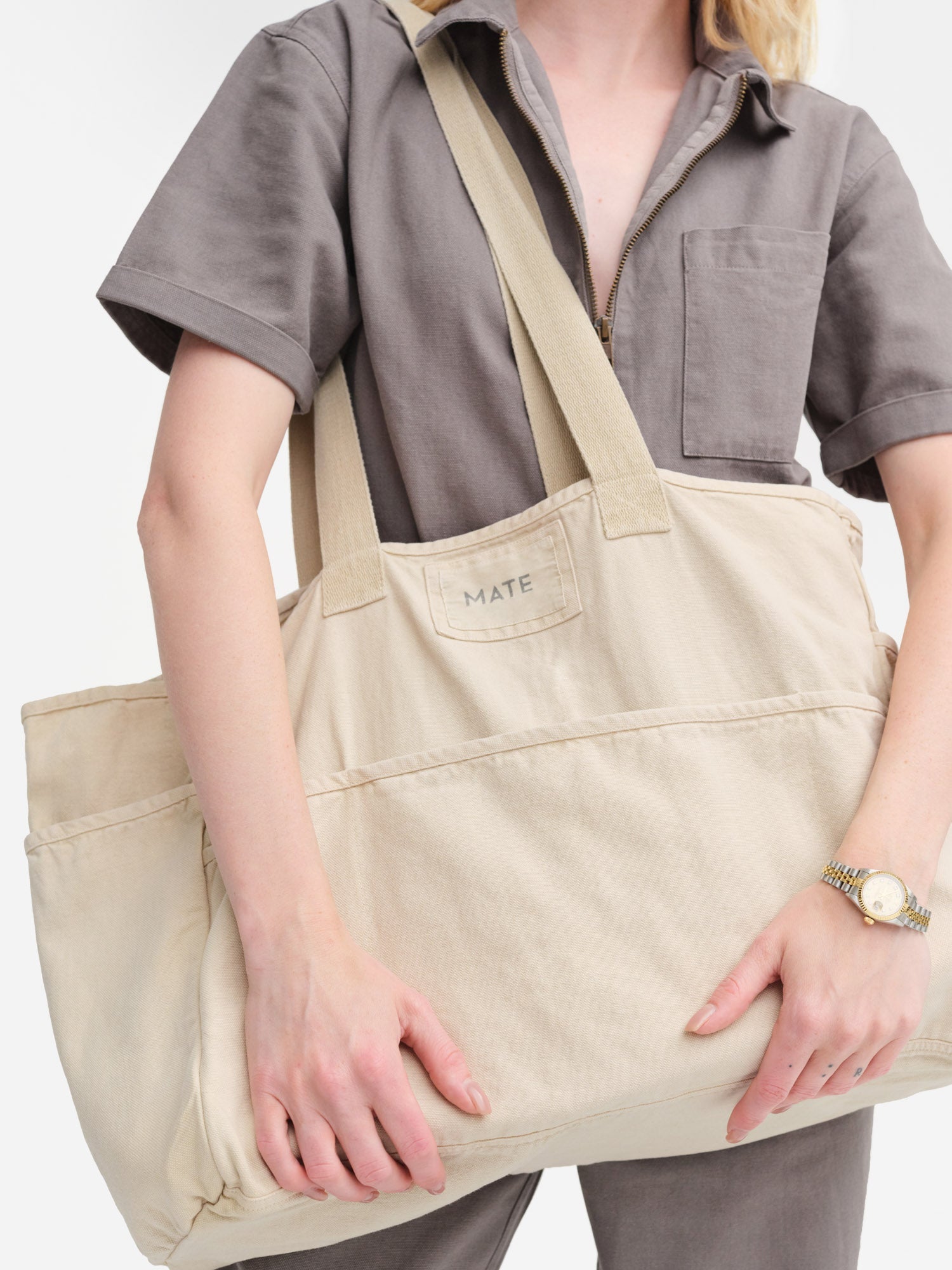 Organic Cotton Canvas Tote. Cotton canvas tote with interior and exterior pockets and MATE logo.