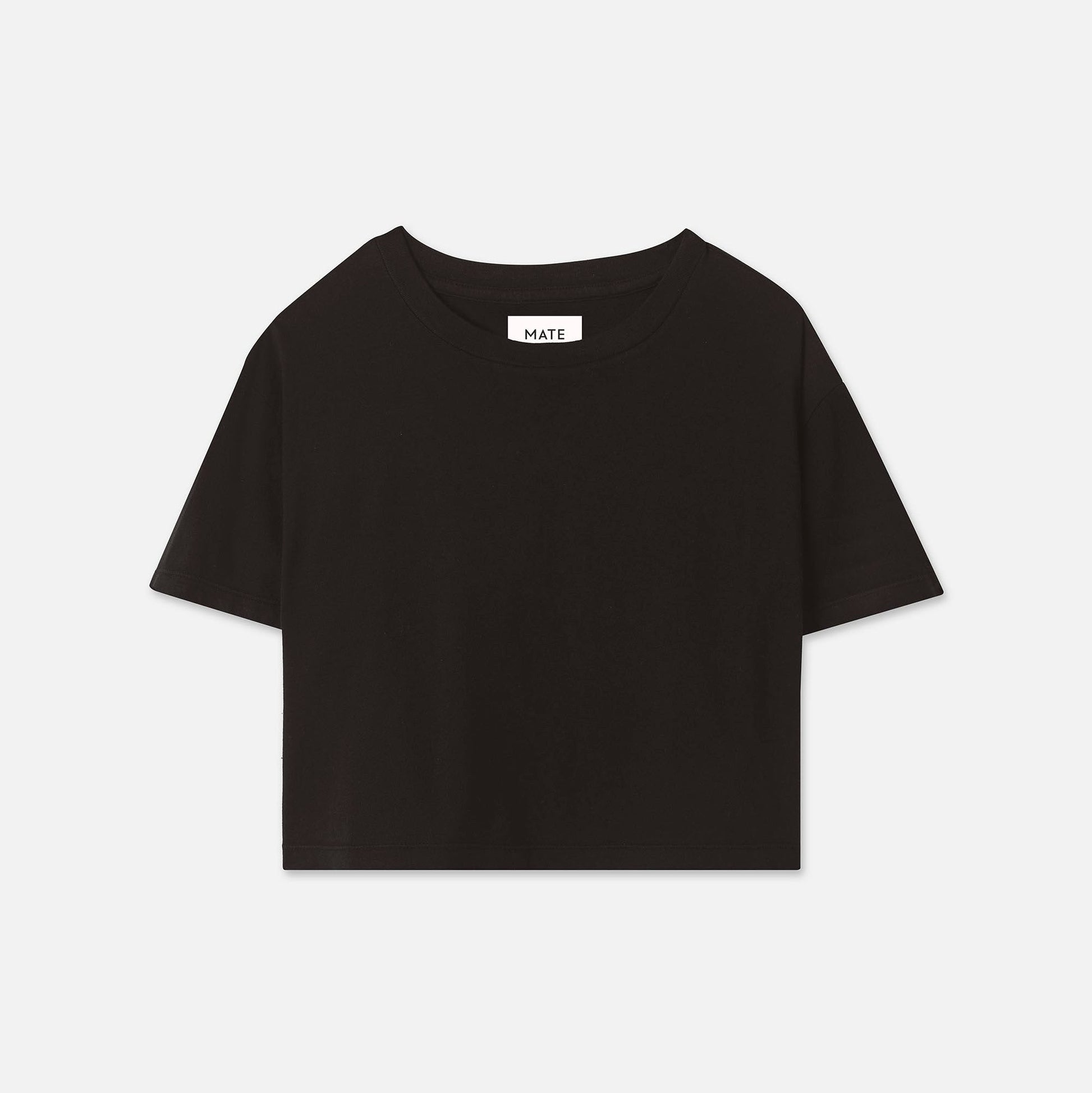 GOTS Certified Organic Cotton Relaxed Crop Tee. Crop tee with a relaxed fit. 17.5" length on size S.