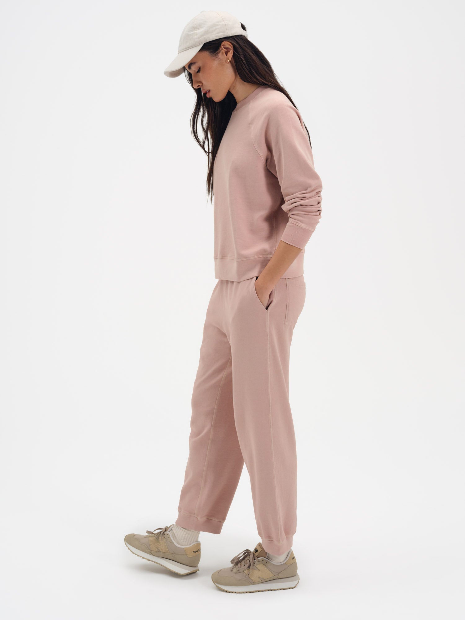 Organic Lightweight Terry has a smooth face and loop back construction. It has a lived-in vibe and an incredibly soft hand feel.