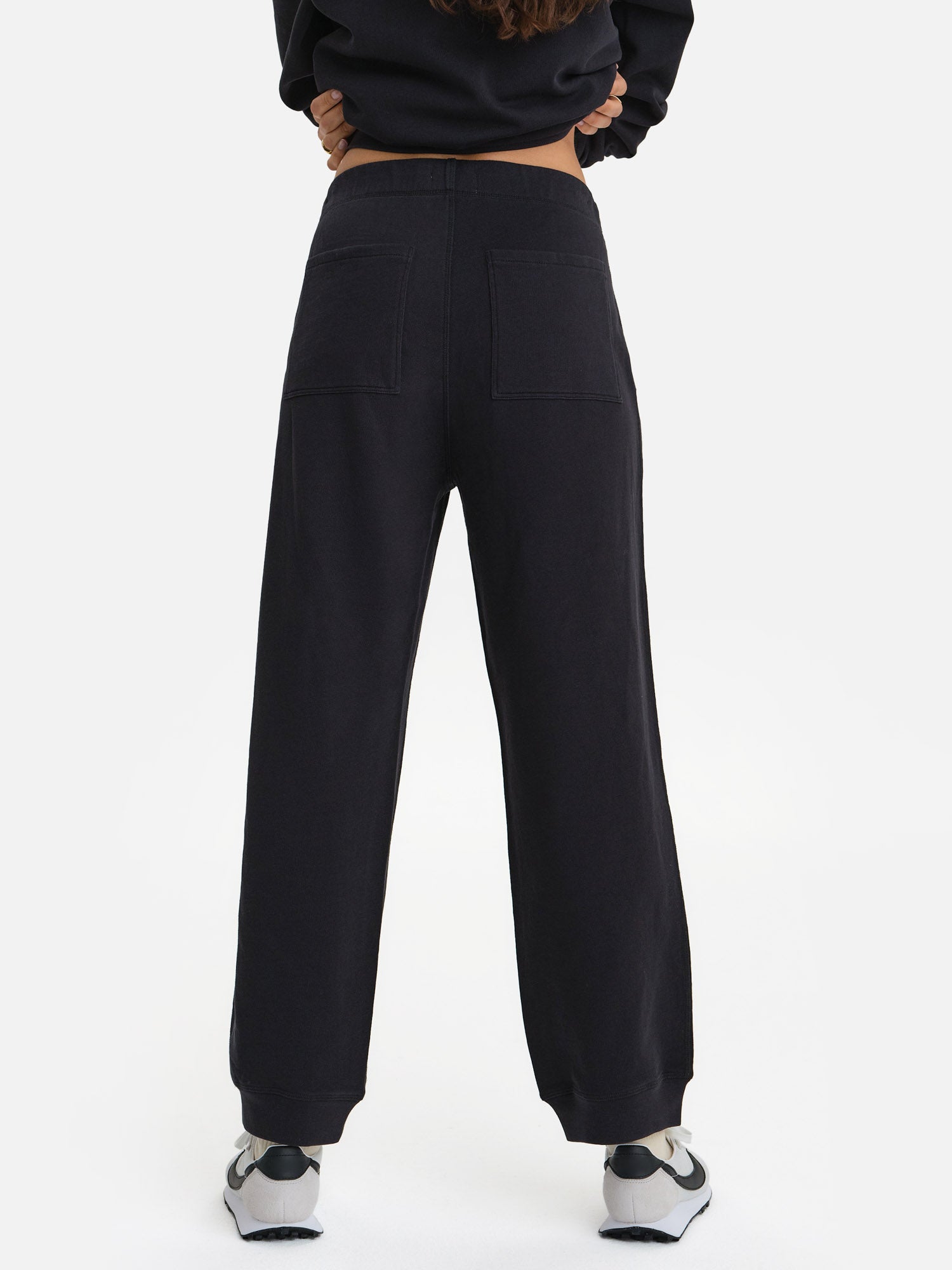 GOTS Certified Organic Lightweight Terry Sweatpants. Relaxed, easy fit. Features side and back pockets, rib trim detail on leg openings, elastic waist and interior drawcord. 100% organic cotton.
